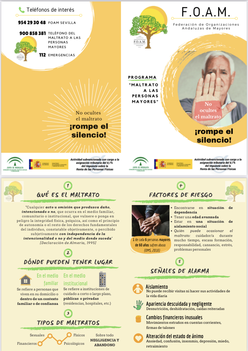 Se trata de una campaña subvencionada por la Junta de Andalucía puesta en marcha por F.O.A.M. (Federación de Organizaciones Andaluzas de Mayores) con la que se quiere sensibilizar a la población acerca del maltrato hacia las personas mayores.