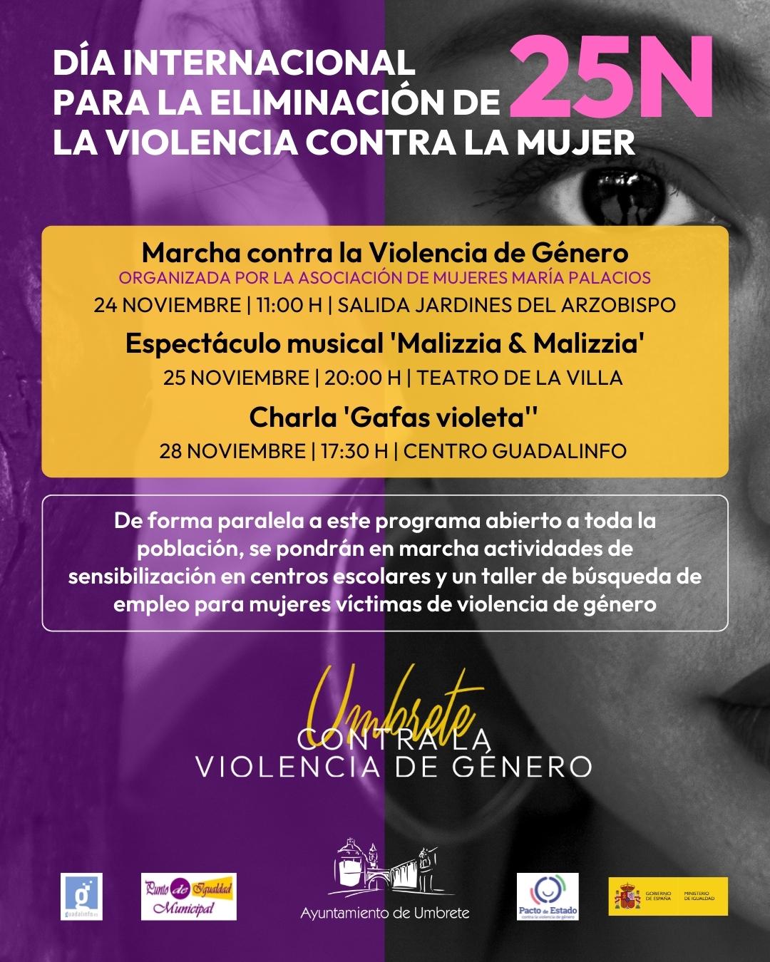 Además, el 25 de noviembre, en el Teatro de la Villa a las 20:00 horas, se podrá disfrutar de un espectáculo musical contra la Violencia de Género, a cargo de “Malizzia & Malizzia”.