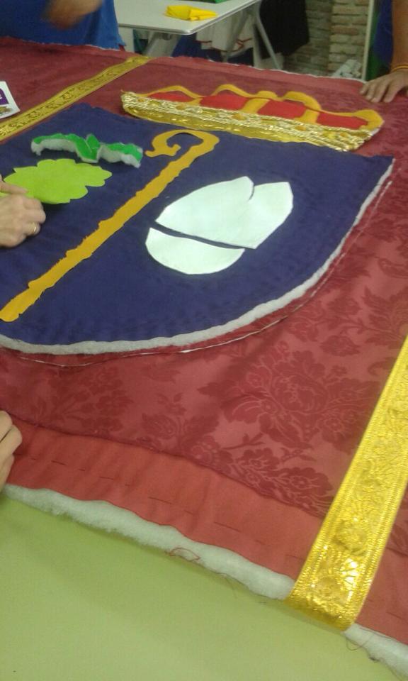 Los alumnos y alumnas del módulo de Confección Industrial del Taller de Empleo 'El Palaci'o están elaborando las colgaduras para el balcon del Ayuntamiento de Umbrete con bordados en recorte. Asimismo, también están cortando los uniformes para el personal de jardineria del Ayuntamiento.