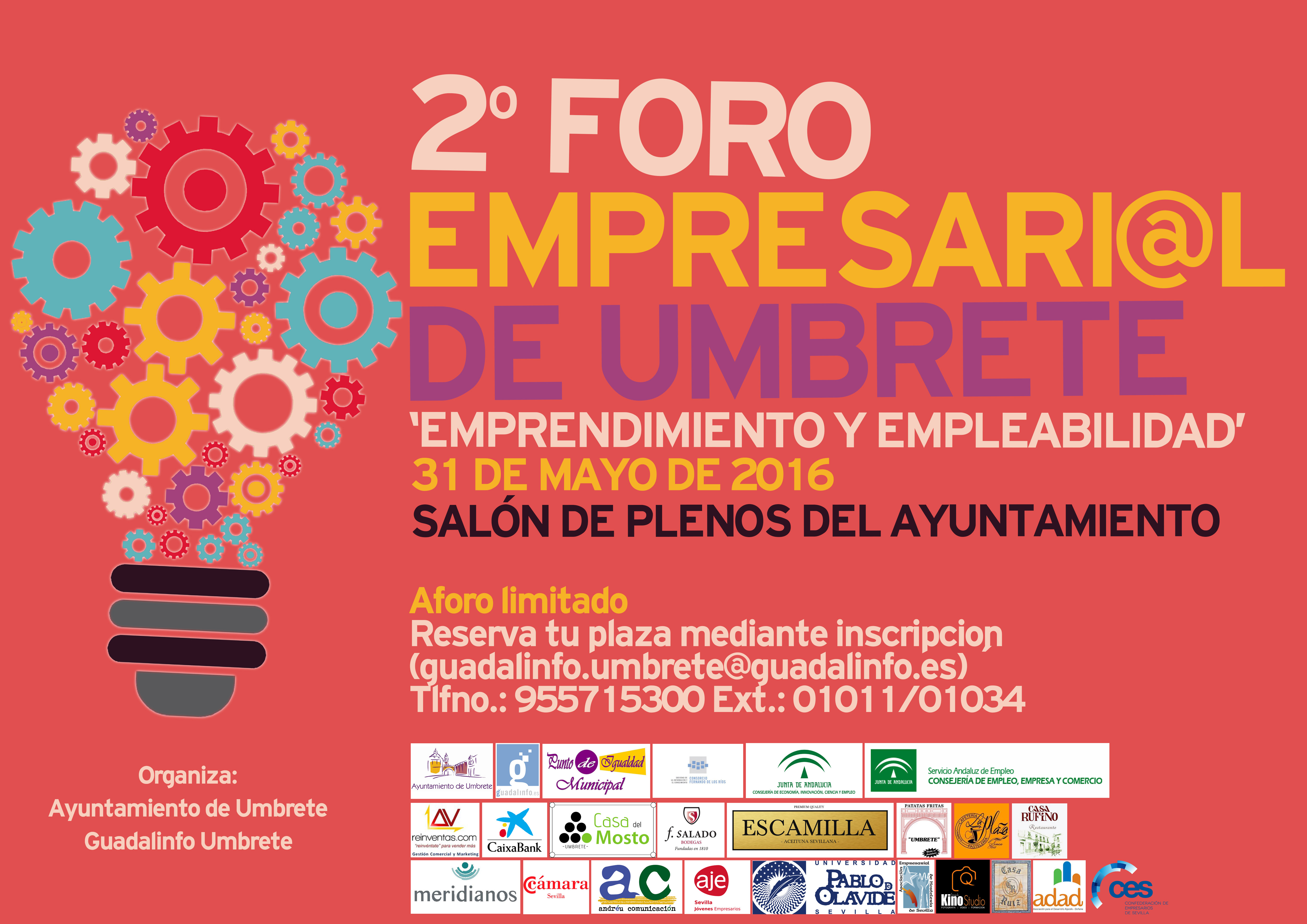 POR CUESTIONES DE ORGANIZACIÓN SE TRASLADA LA CELEBRACIÓN DEL II FORO EMPRESARIAL “EMPLEABILIDAD Y EMPRENDIMIENTO” AL SALÓN DE PLENOS DEL AYUNTAMIENTO DE UMBRETE.