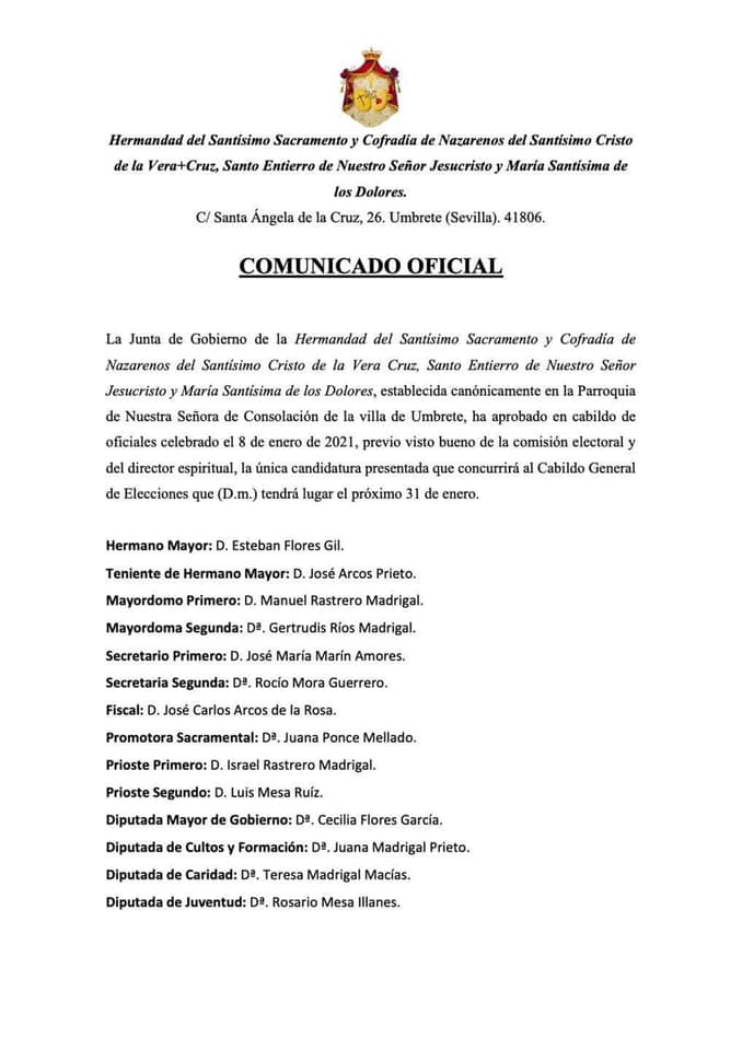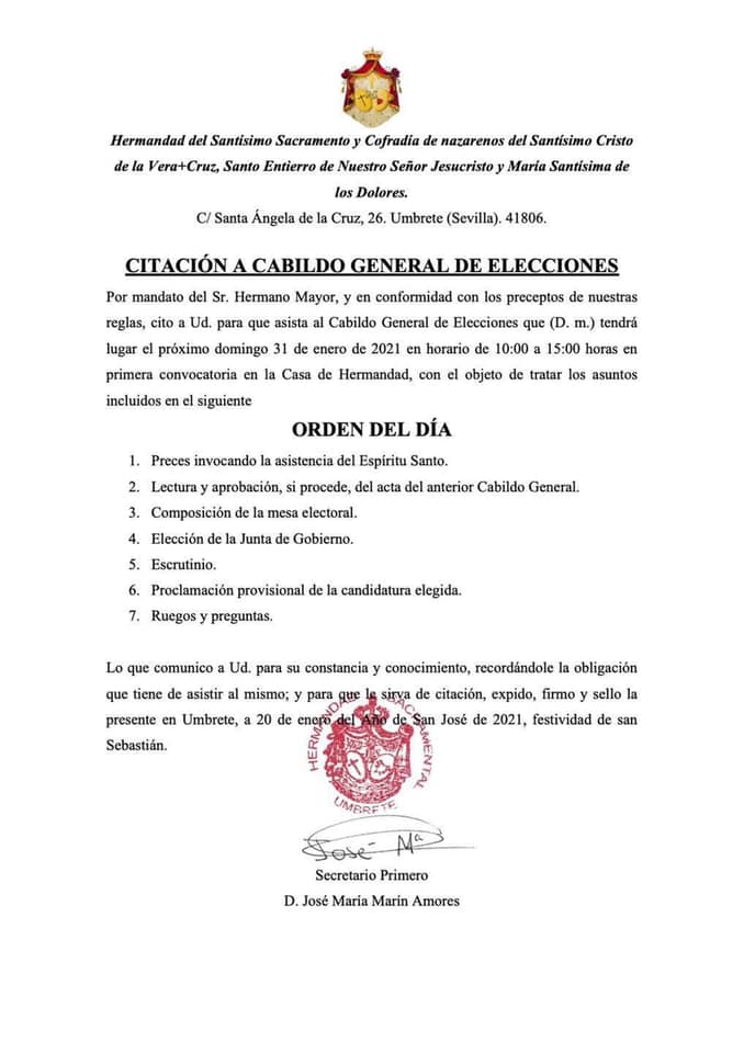 CABILDO GENERAL DE ELECCIONES DE LA JUNTA DE GOBIERNO DE LA HERMANDAD SACRAMENTAL DE UMBRETE