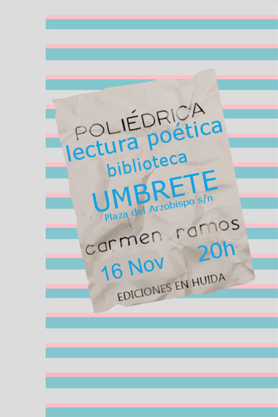 La escritora Carmen Ramos nos ofrecerá la creación poética a través de la lectura y reflexiones de