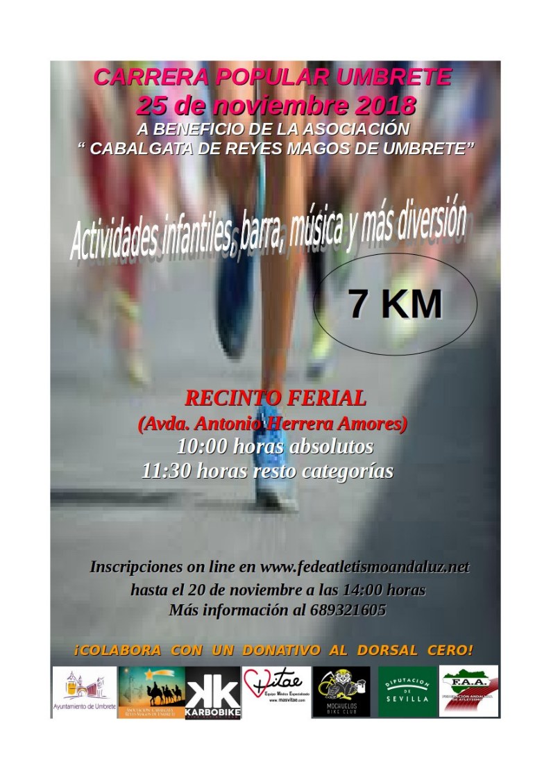 Queda suspendida la Carrera Popular Umbrete organizada desde la Delegación de Deportes del Ayuntamiento de Umbrete junto a la Federación Andaluza de Atletismo que se iba a celebrar el próximo domingo 25 de noviembre por falta de inscripciones de participantes en la misma.