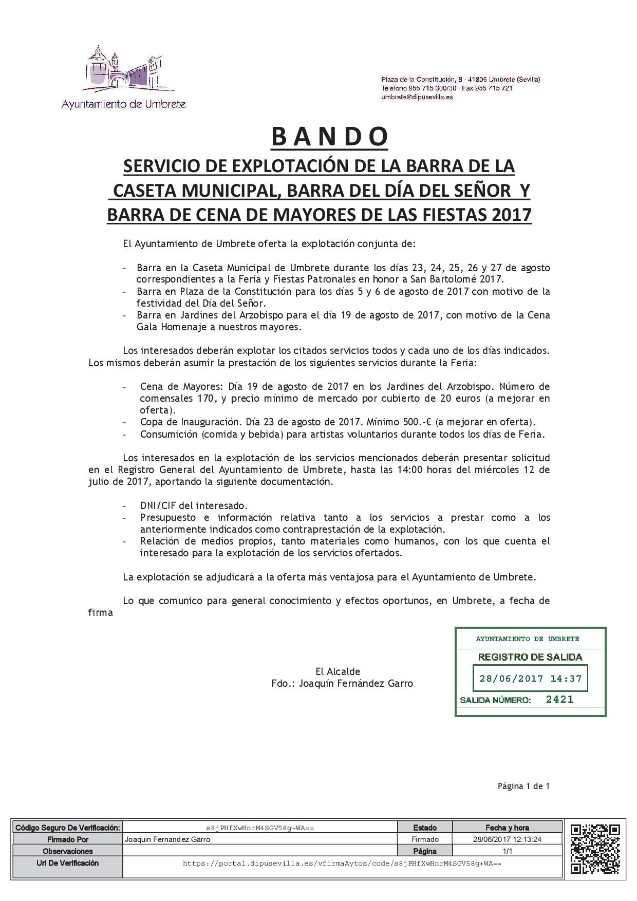 BANDO SERVICIO DE EXPLOTACIÓN DE LA BARRA DE LAS FIESTAS 2017