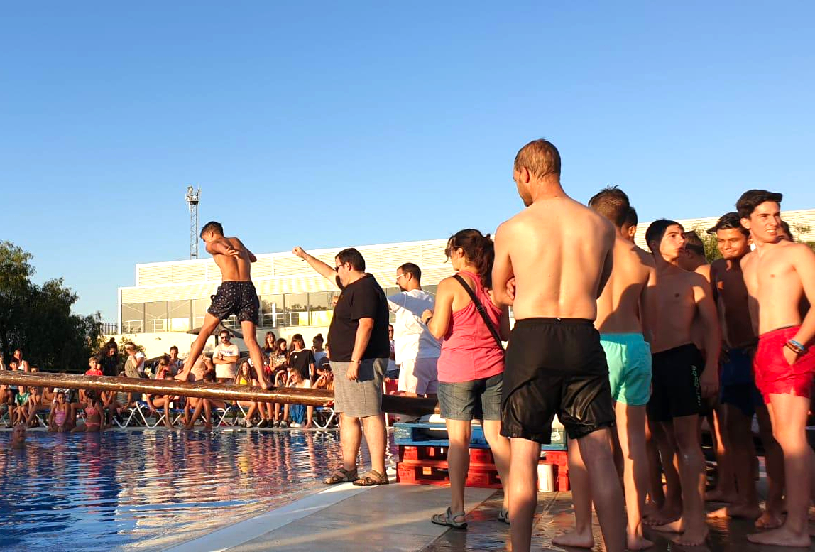 Este jueves se ha celebrado la tradicional Cucaña Acuática, actividad organizada por el Ayuntamiento de Umbrete con motivo de las Feria y Fiestas Patronales de Umbrete 2019.