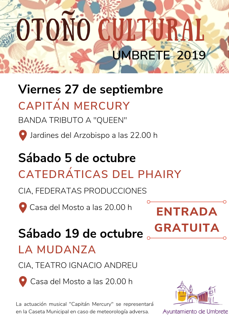 El Ayuntamiento de Umbrete organiza el Otoño Cultural de Umbrete 2019.