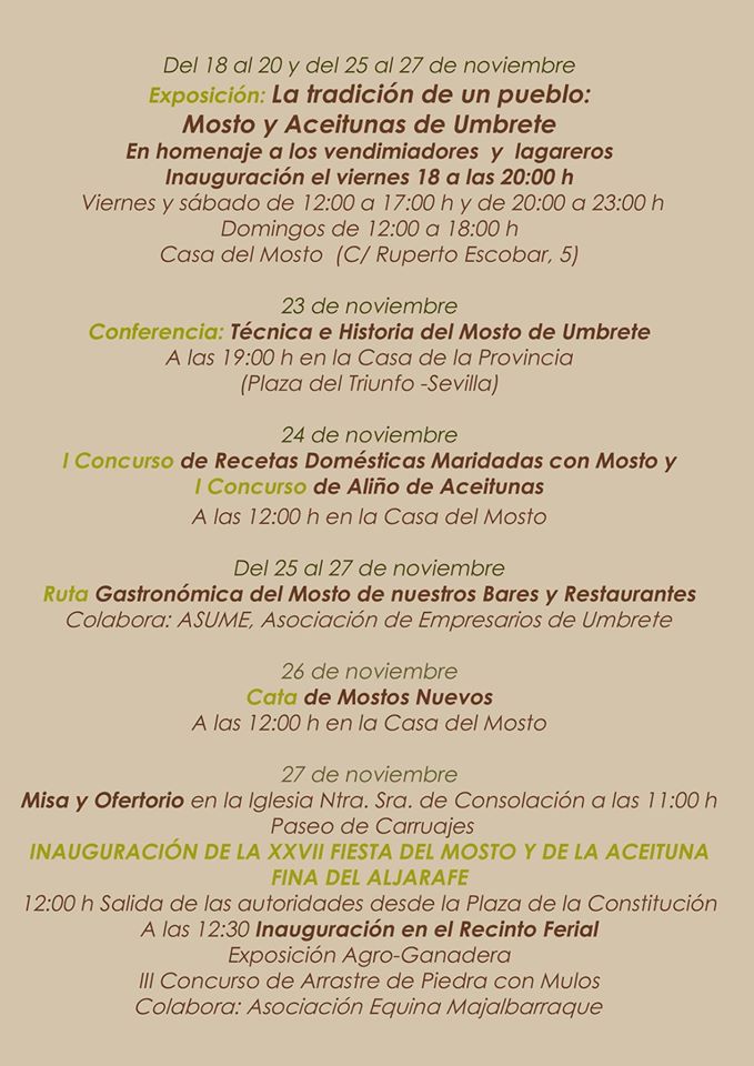 PROGRAMA DEL XXVII DÍA DEL MOSTO Y DE LA ACEITUNA FINA DEL ALJARAFE