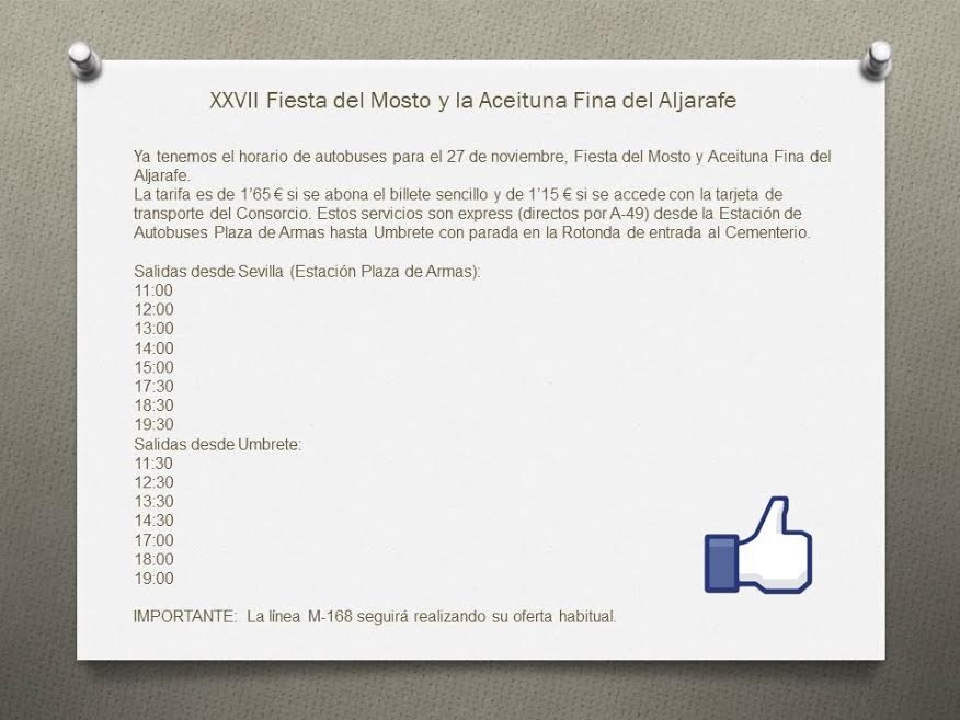 HORARIO DEL SERVICIO ESPECIAL DE AUTOBUSES PARA LA FIESTA DEL MOSTO
