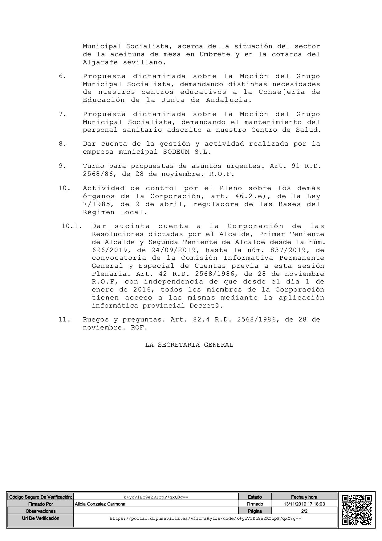 CONVOCATORIA DE PLENO ORDINARIO