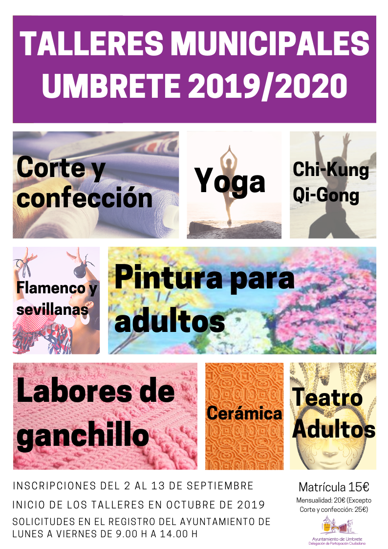 La Delegación de Participación Ciudadana del Ayuntamiento de Umbrete organiza los talleres municipales del próximo curso 2019/2020.