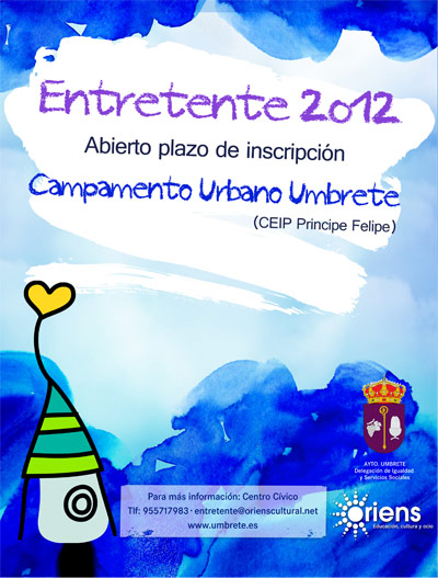 Entretente 2012. Ese es el nombre del Campamento Urbano que se realizará durante el próximo verano en Umbrete y que ofrecerá una alternativa de ocio y convivencia a los niños y niñas de nuestro pueblo. Ya está abierto el plazo de inscripción de esta iniciativa que organizan conjuntamente el CEIP Príncipe Felipe y el Ayuntamiento de Umbrete con la colaboración de la organización Oriens Cultural.